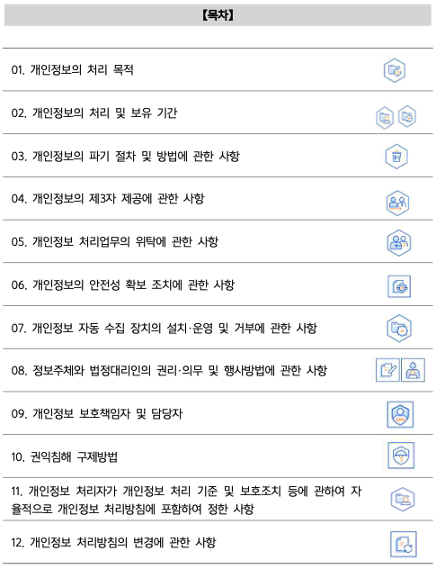 제11조 (개인정보 처리자가 개인정보 처리 기준 및 보호조치 등에 관하여 자율적으로 개인정보 처리방침에 포함하여 정한 사항)